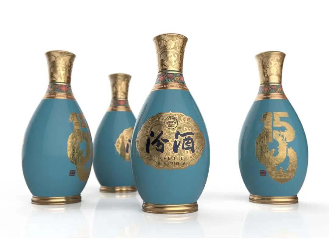 作品點評:該參賽作品的設計靈感和思考來源于汾酒1500年的成名史,寶藍色的瓶身1500的金屬色圖騰,承載了汾酒的核心文化。1500圖騰由巴拿馬萬國博覽會圖騰,北齊武成帝造像,杏花圖案,詩句“借問酒家何處有,牧童遙指杏花村”紋樣,“神泉”圖騰等組成。瓶子色彩采用藍色系,從汝窯天青,綠松石,孔雀藍釉中提取,配色陶瓷瓶身及外包裝,典雅大氣莊嚴。
